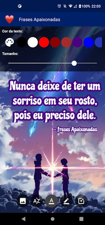 Thinker - Phrases and Status is the perfect app for you to share phrases, statuses and thoughts on social media. Now you can share text in an image, customize it your way by changing the font, size, image and color of the text.