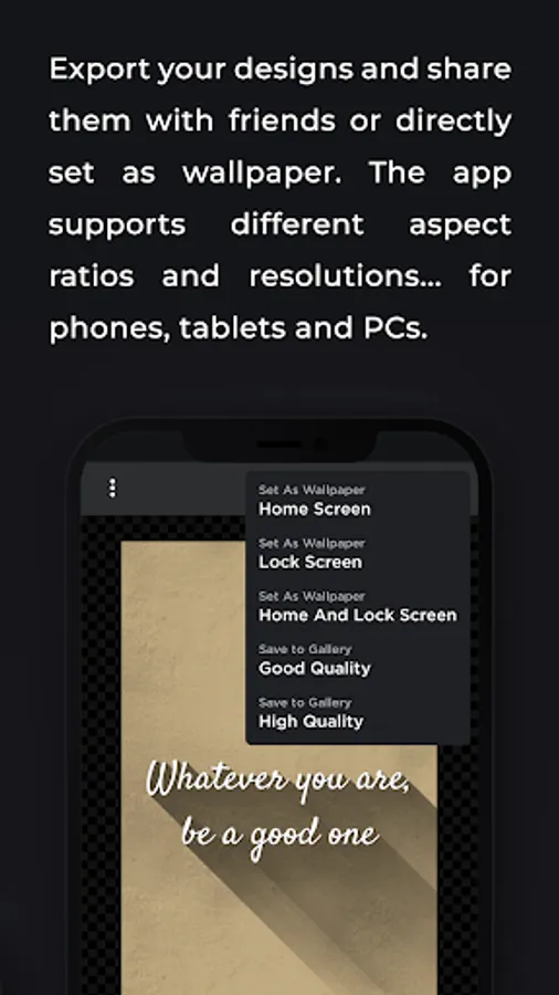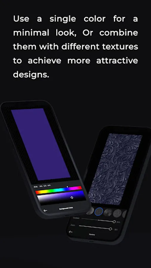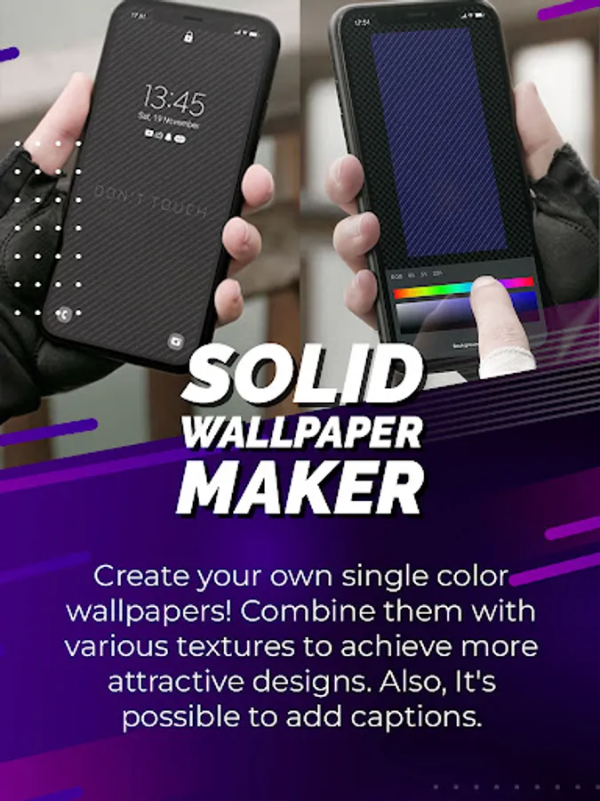 Use a single color for a minimal look, Or combine them with various textures to achieve more attractive designs. Also, It's possible to add captions to wallpapers.