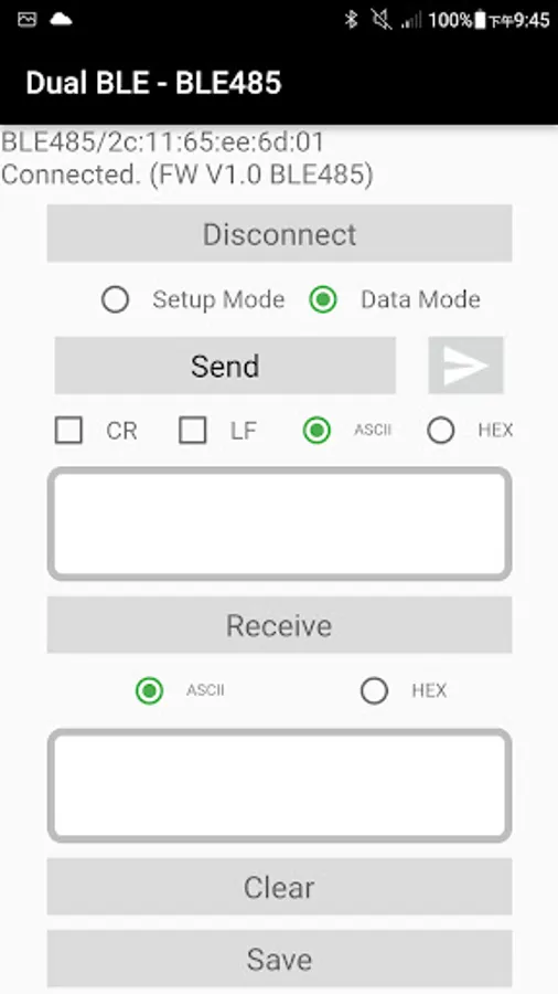 The Android portable devices will connect with the Bluetooth Low Energy (BLE) to serial port converter devices and exchange data with them bi-directional. The serial port includes RS-232 or RS-422 RS-485 interfaces. The user will test the APP with the SCADA, Robot, UAV, PLC, CNC or etc. with the BLE to serial port devices. The APP will be customized to meet the specific applications.