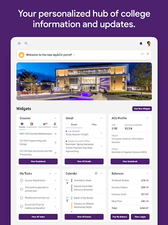 myACU is your one-stop shop connecting you with the systems, information, people and updates you'll need to succeed at Abilene Christian University.