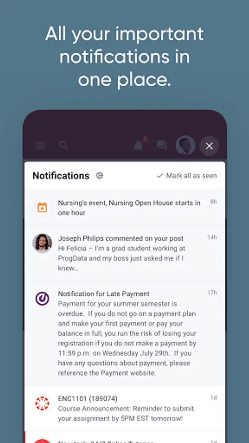 Receive updates when grades are published, assessments are due and announcements are posted.