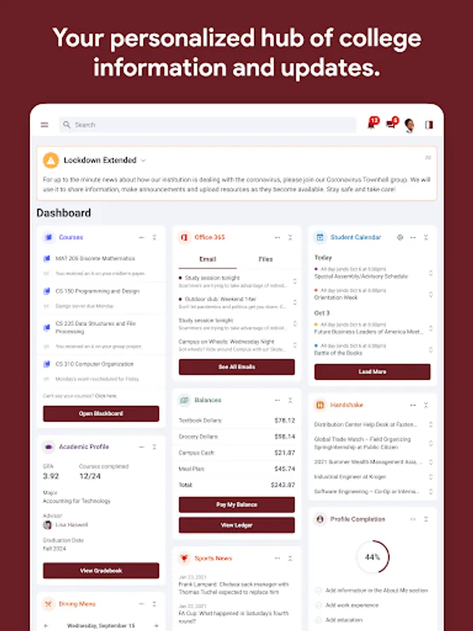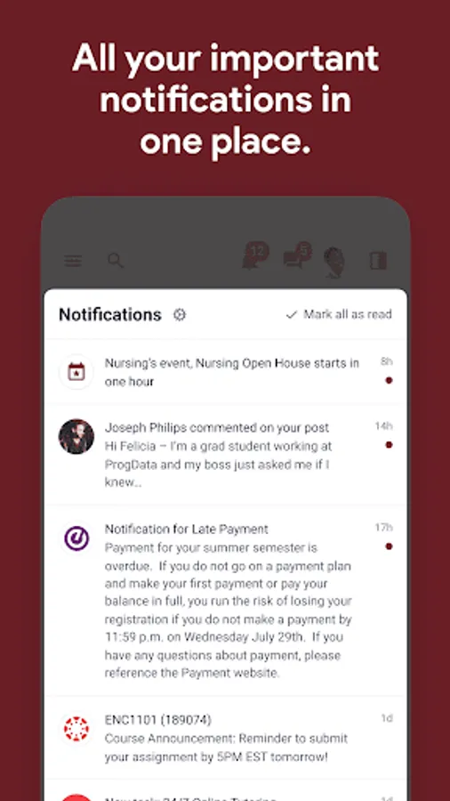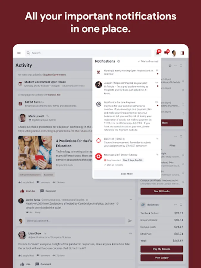 - Receive key notifications from University Registrar, Canvas and Student Success Offices