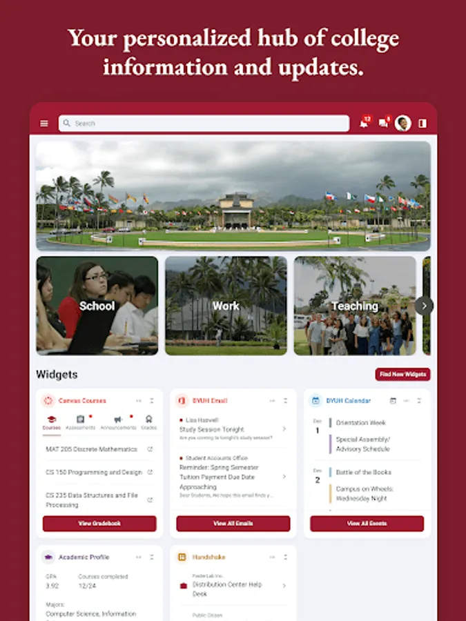 - Access the Student Center, Canvas, your BYUH email, and other everyday systems.
