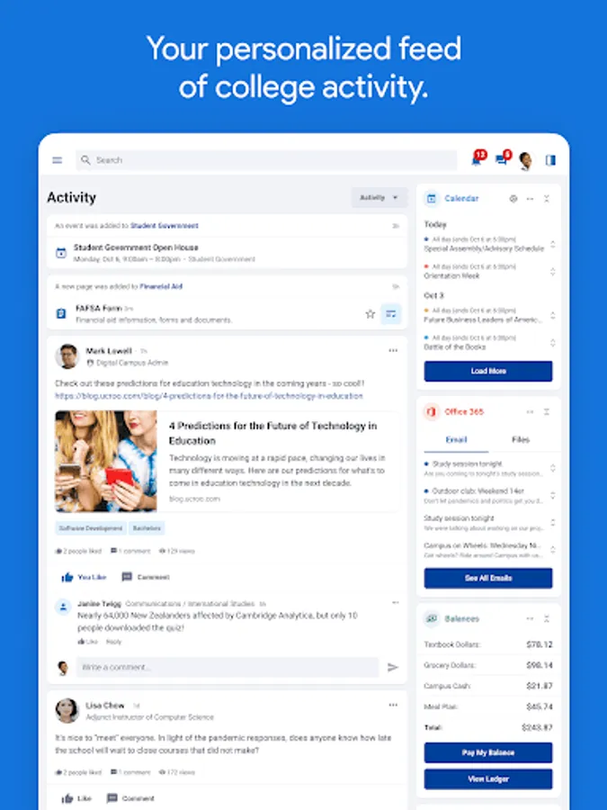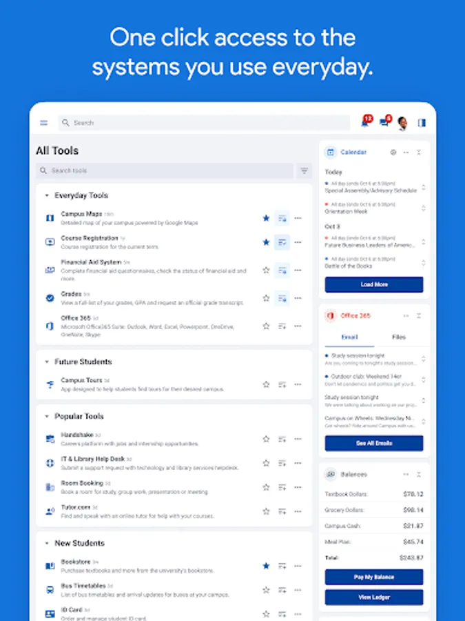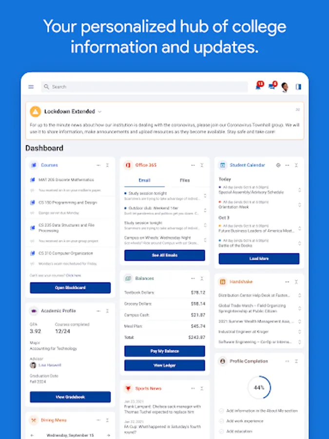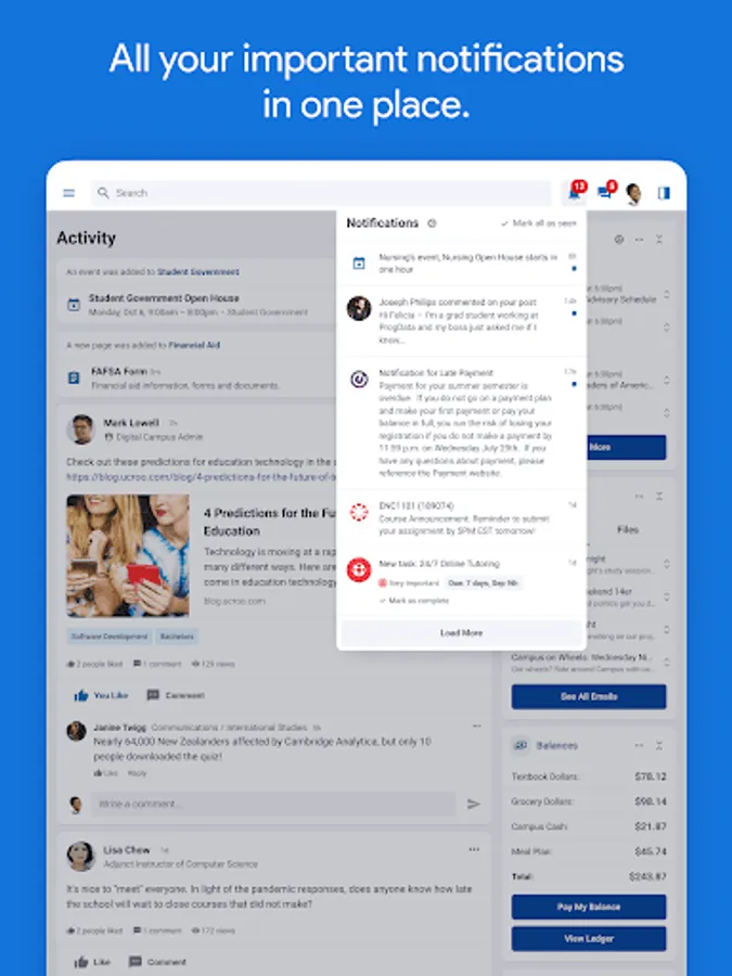- Receive key notifications from Banner, Canvas and Registrar, EAB Navigate