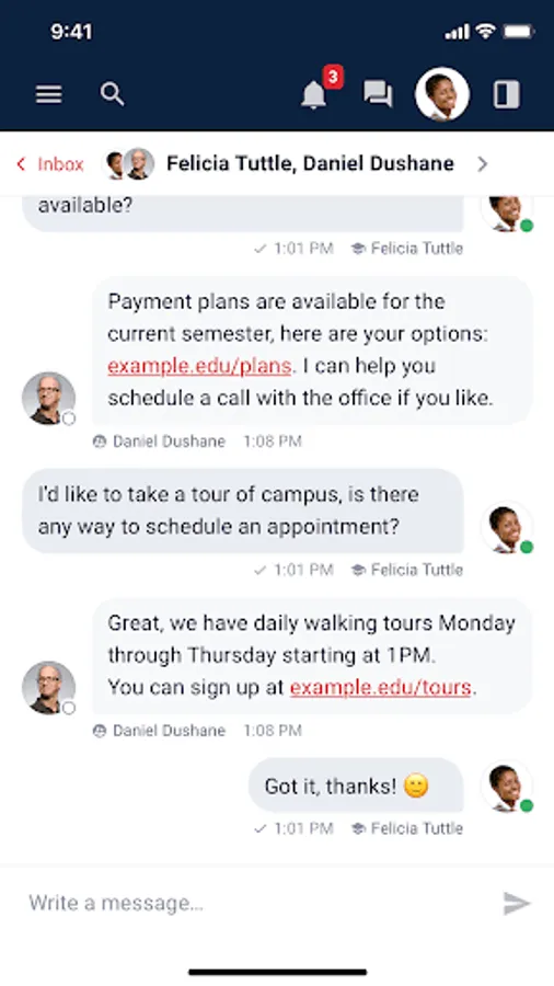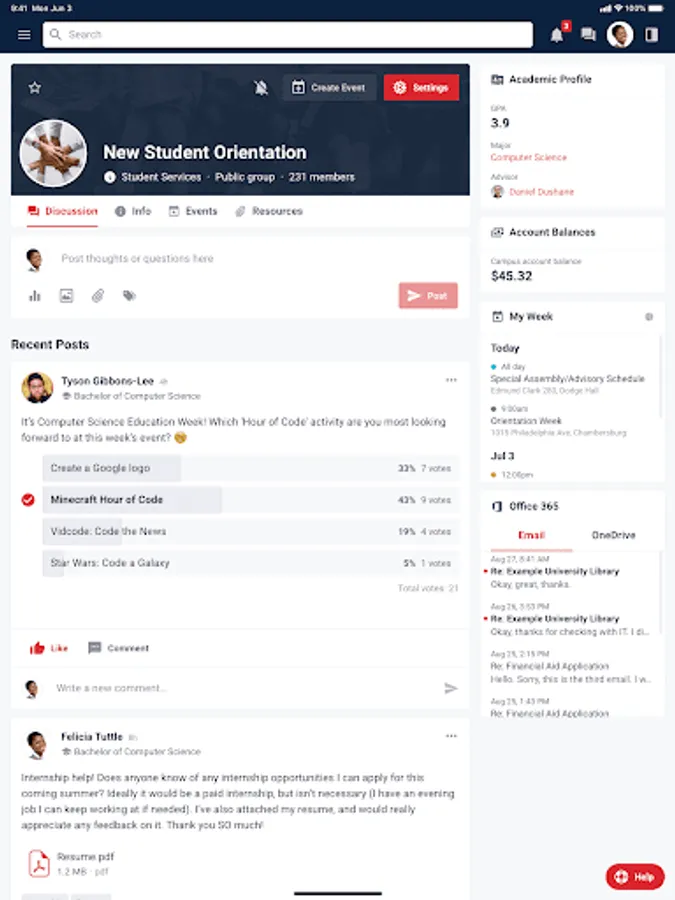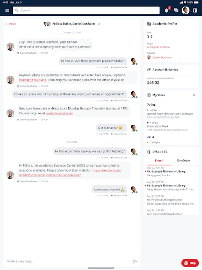 Our mobile application puts the people most critical to a quality college experience at your fingertips.