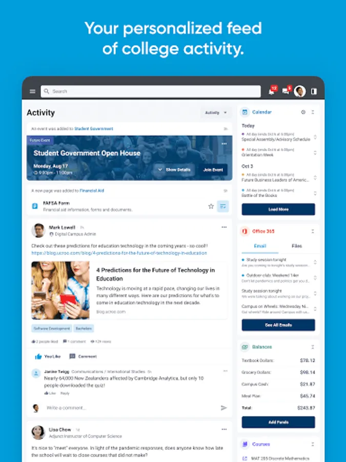 Eaglenet is the central hub of information for John Brown University students, faculty and staff. Connect to your classes, personal schedule, campus calendars and various campus resources. Eaglenet is also the go-to source for campus news, announcements and connecting with other students through Eaglenet Groups. JBU employees can access financial management, productivity tools and resources to easily manage their jobs.