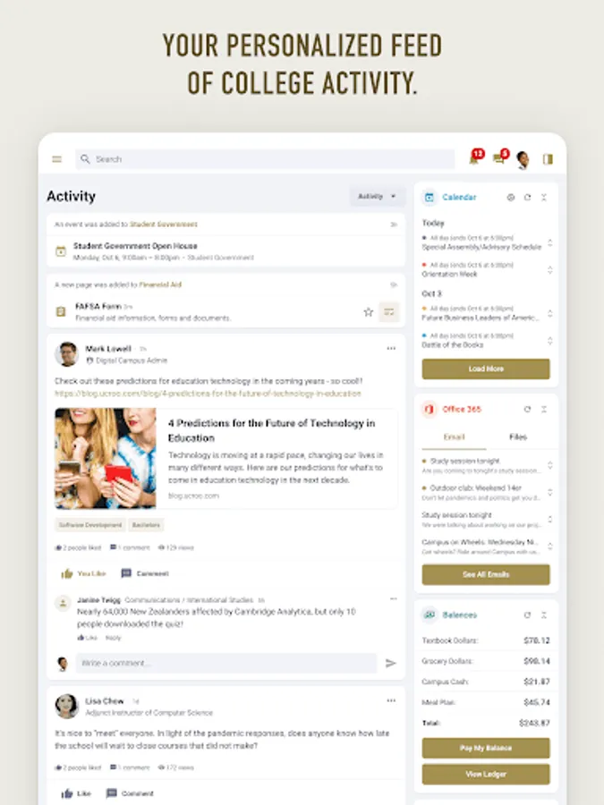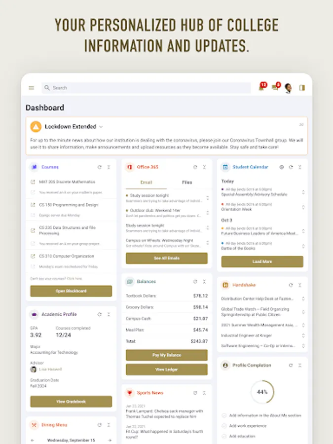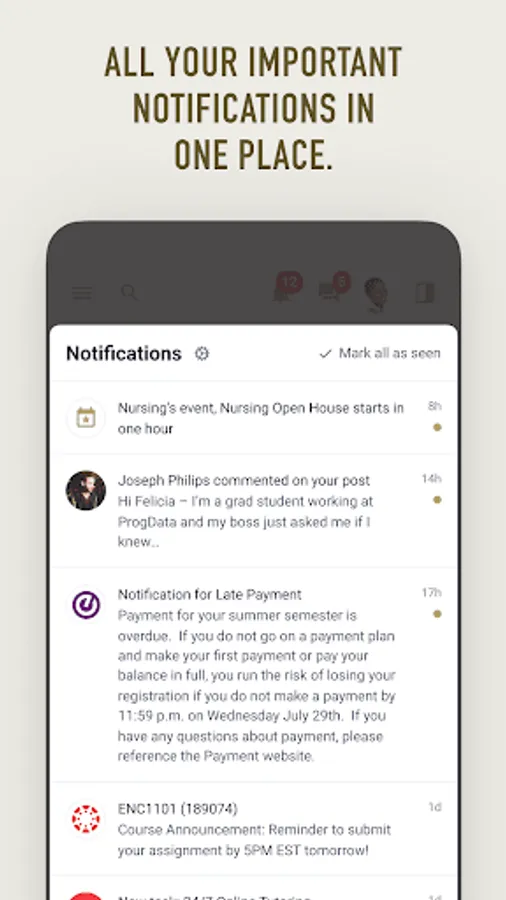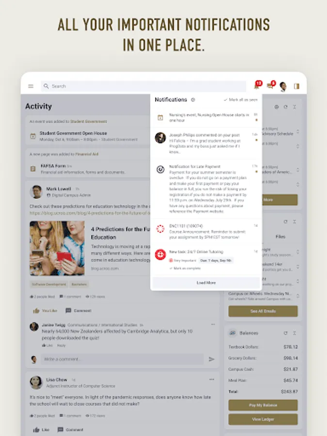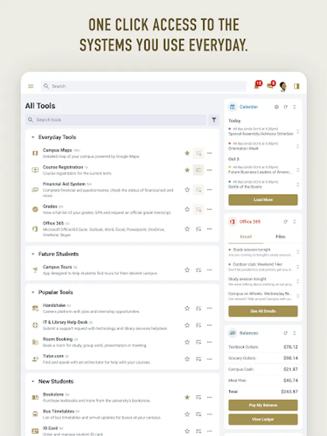 - Receive key notifications from Student Systems, Canvas, and Workday