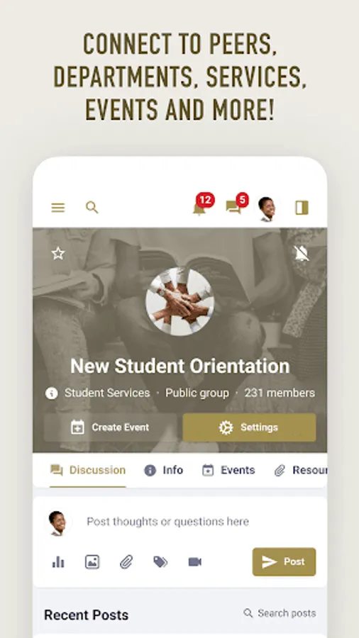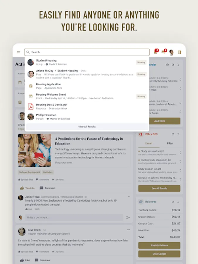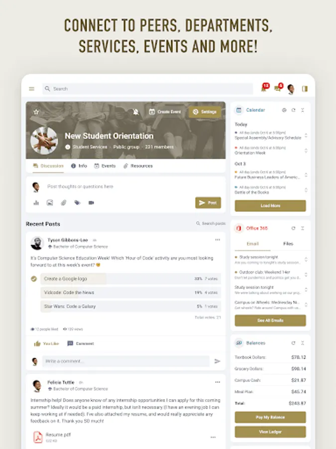 - Find and join campus events