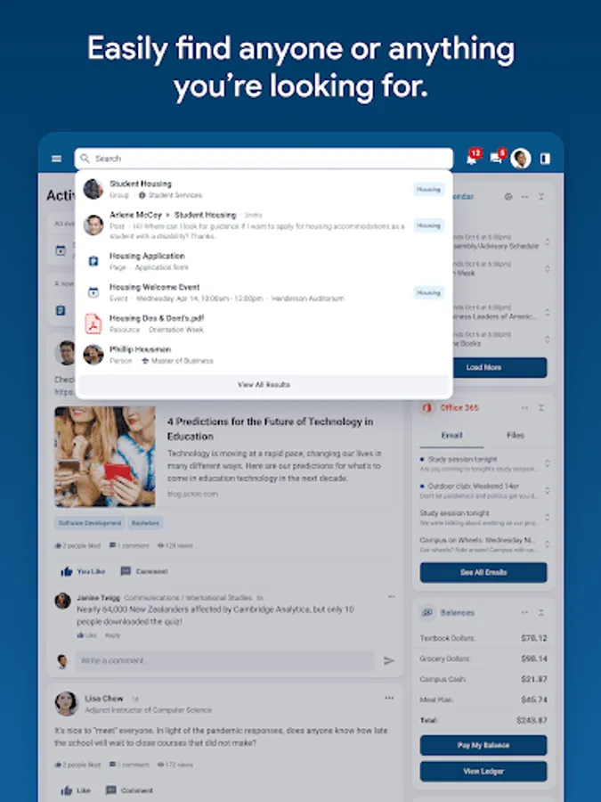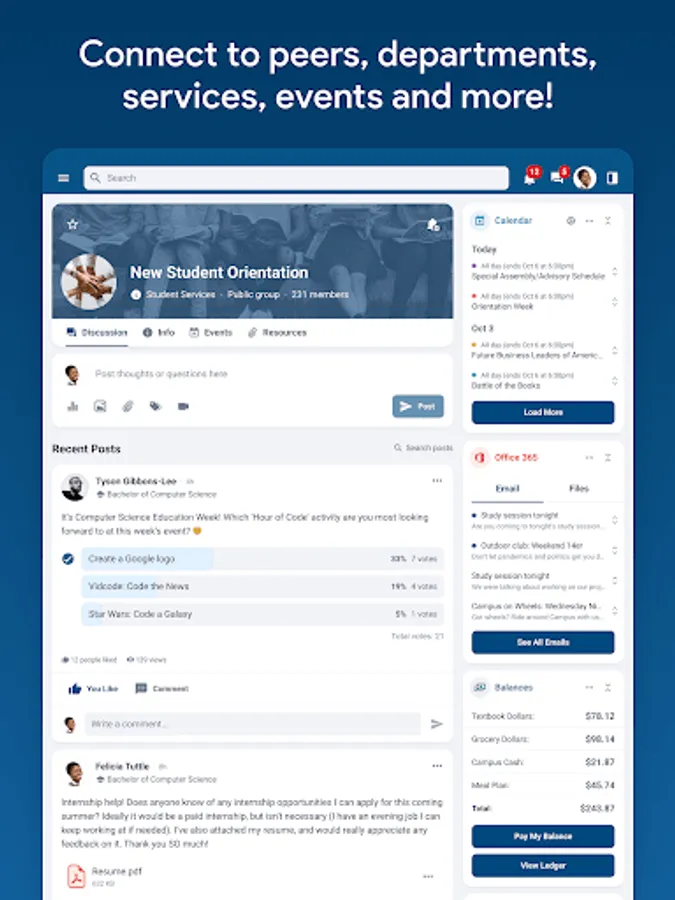 - Find and join campus events