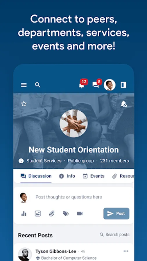 - Connect with staff, peers, and resources