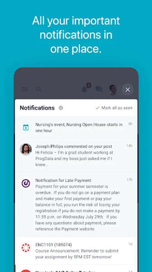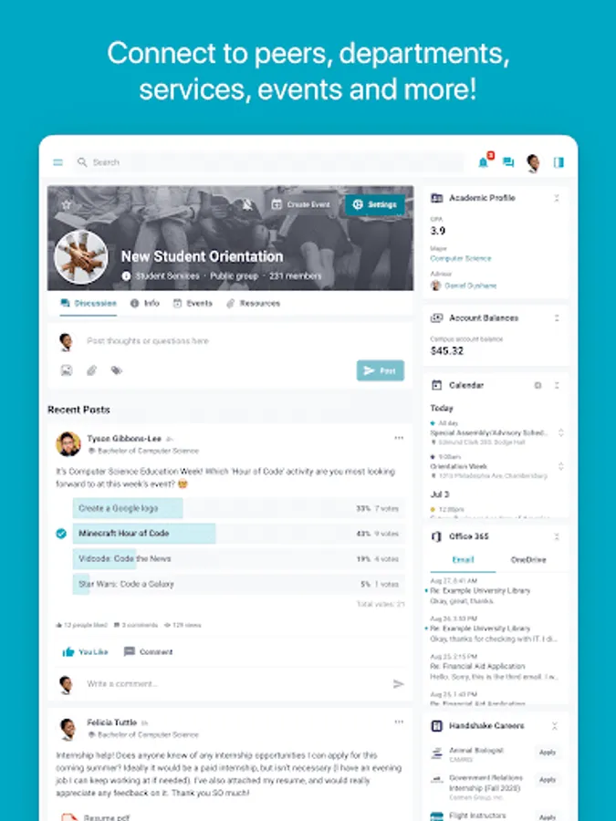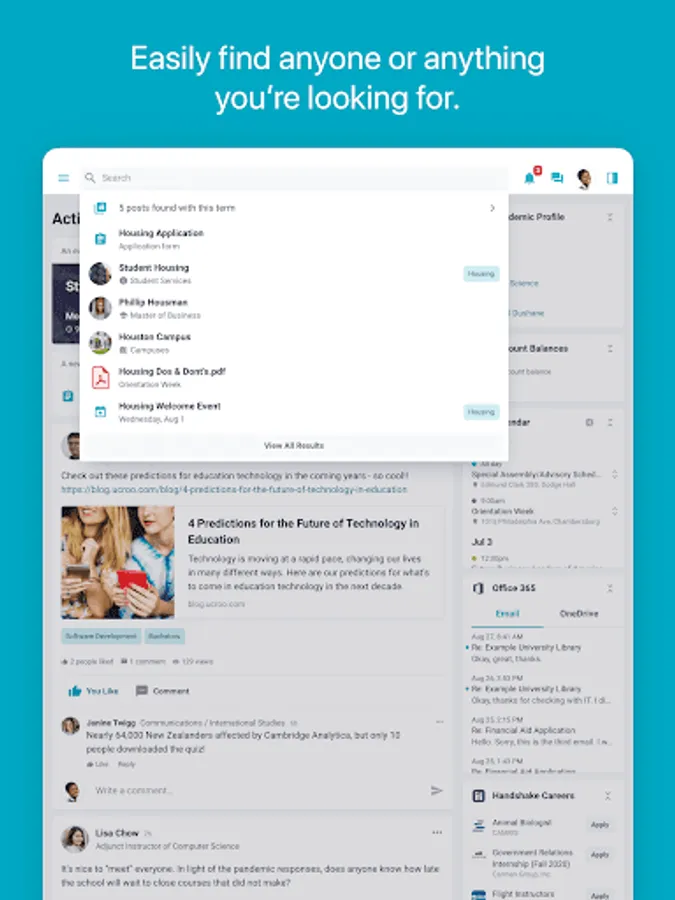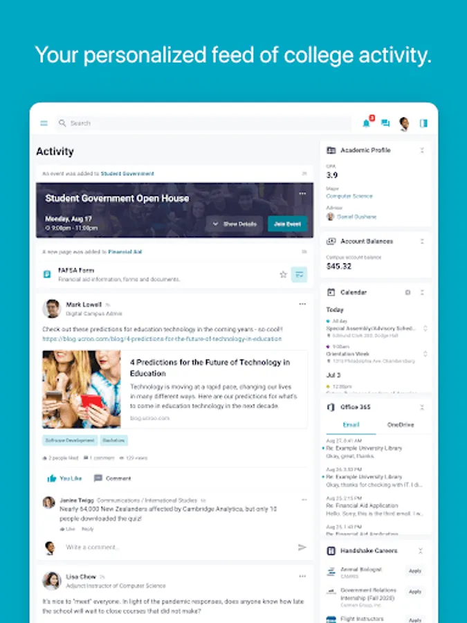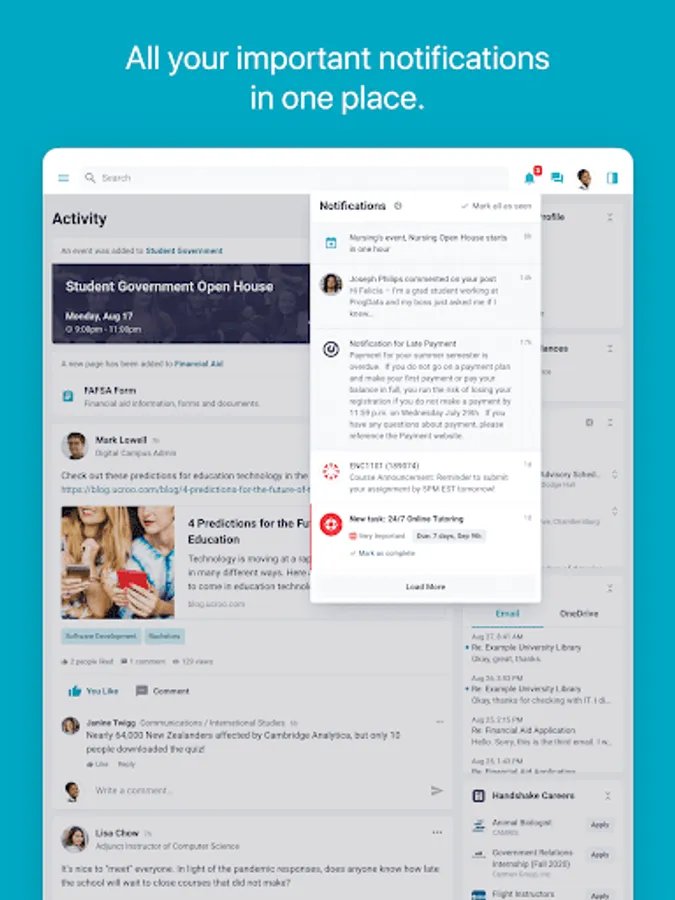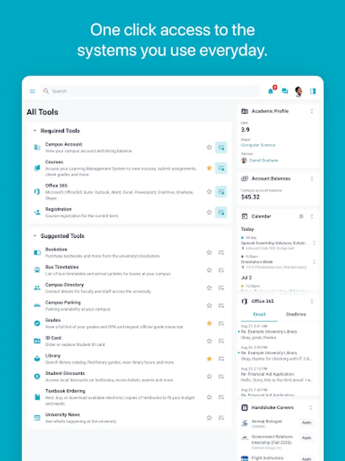 - Access Blackboard, MAP, student services, Email and other everyday tools