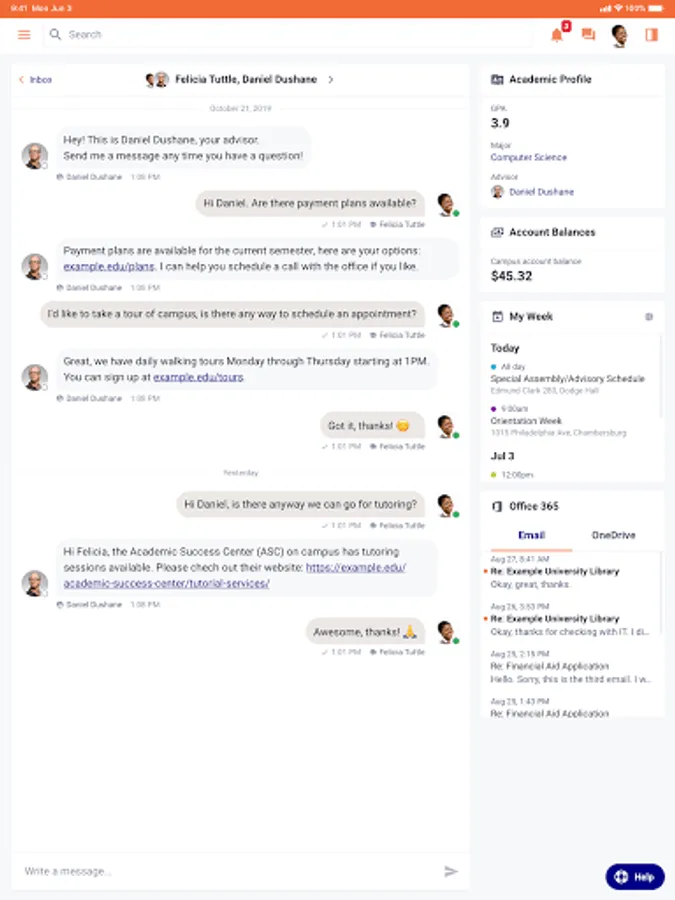 Our mobile application puts the people most critical to a quality college experience at your fingertips.