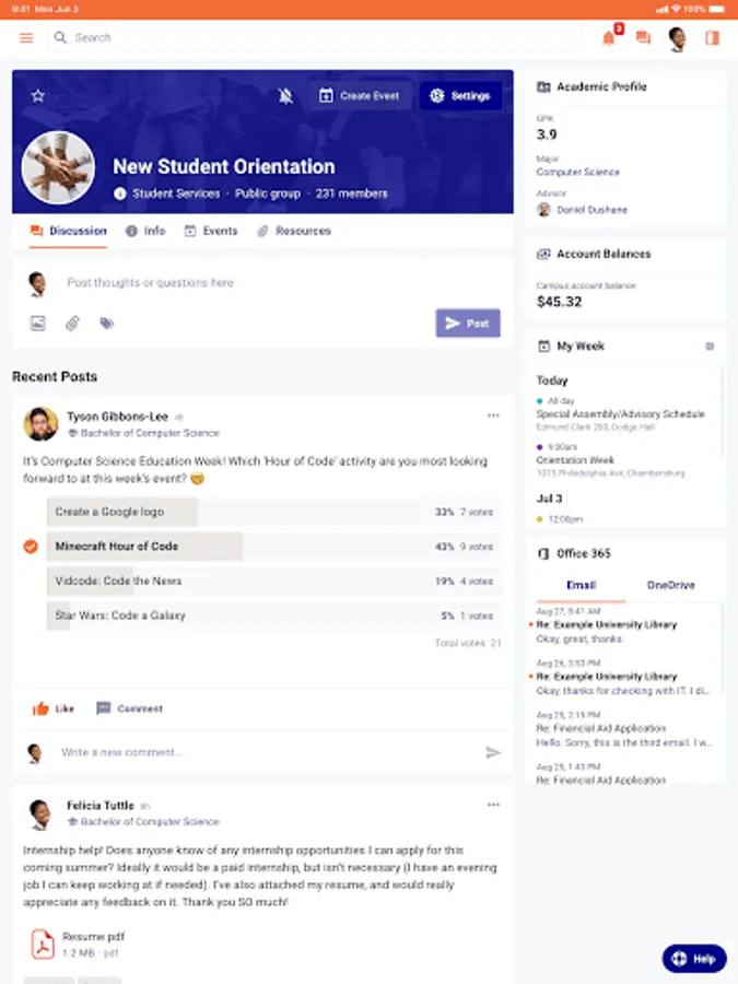 -Ask fellow students questions, polls, and more