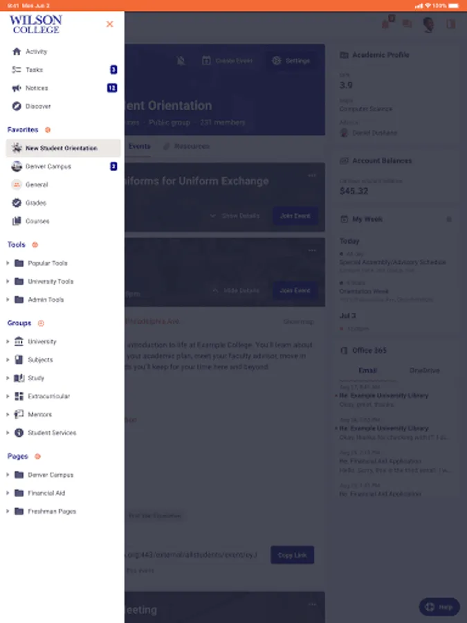 Use the My.Wilson app and Wilson Portal for quick access to Canvas, Phoenix Card, calendars, communication with your Wilson campus community and more.