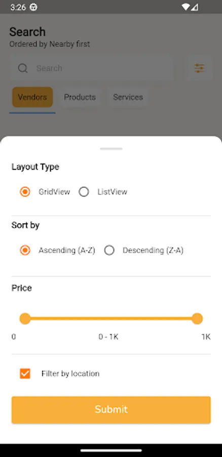 Users can browse available vendors and products, select what they need, and arrange for delivery through the app.