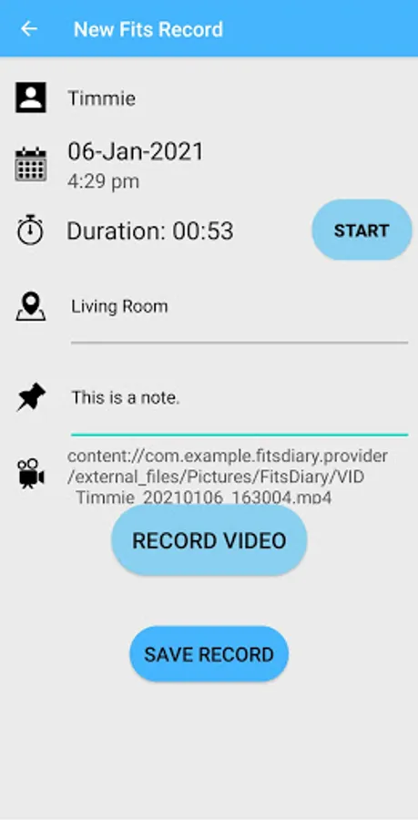 Fits Record: Users can record occurences of their child’s fits in the app.