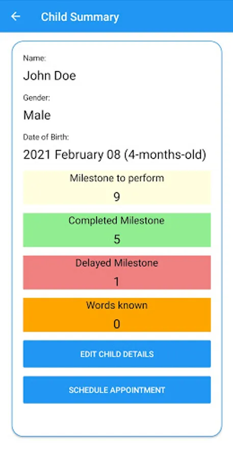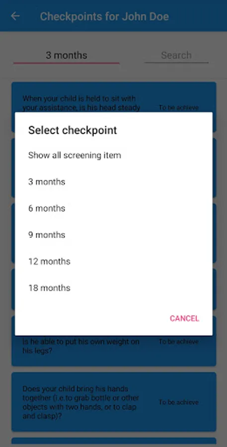 This application is a pilot study for our research on using Mobile applications for Early Child Development Screening. The use of this application allows parents/caretaker to perform early child development screenings to record down the milestones achieved by the child via checkpoints which is in (3 months, 6 months, 9 months, 12 months and 18 months)