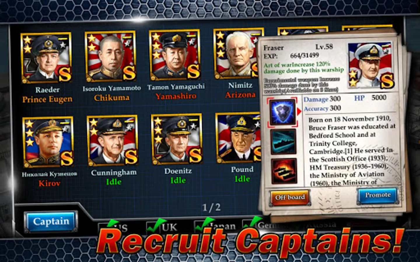Become the supreme commander, assemble ships and blast the forefront! Gather the legendary combat ships and generals to fight for you, conquer the world, rewrite the glorious naval battle history!