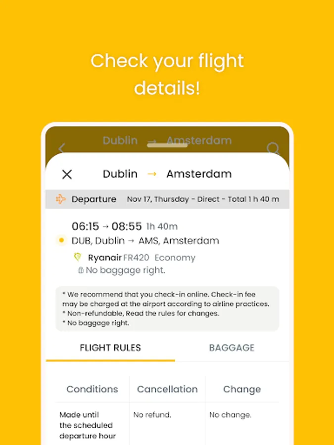 Providing easy booking opportunity with its features like viewing and managing your flights, saving passenger information and invoice details and online check-in time notification, Ubfly mobile application also offers the option to select one-way and return tickets from different airlines to benefit from the best prices for domestic or international flights thanks to its user-friendly design.