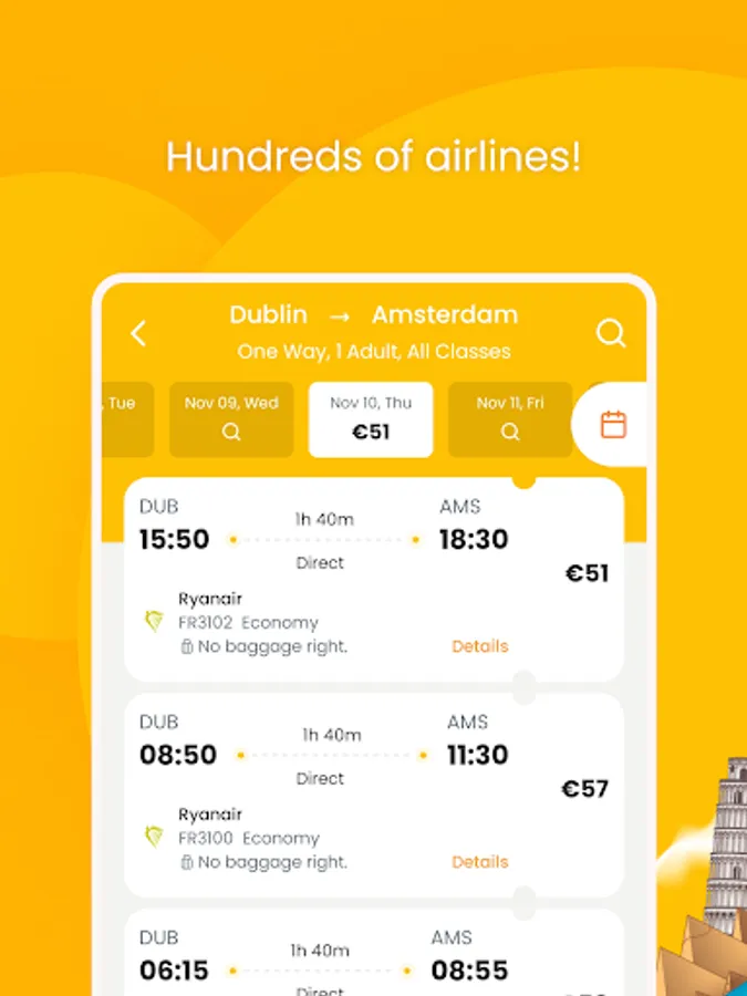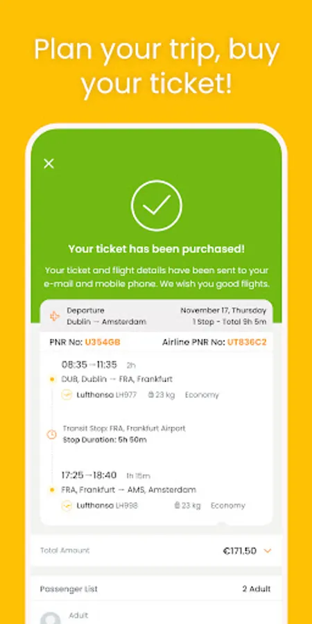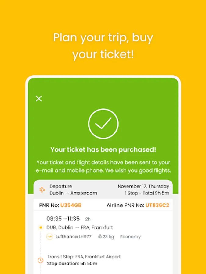 You can view the flights of over 500 airlines that provide domestic and international flight service, compare the flights and prices and easily find the most suitable ticket for you thanks to the Ubfly’s mobile application. You can view all flights sorting by travel date, see flight ticket deals and buy the cheapest flight ticket and plan your travel within minutes.