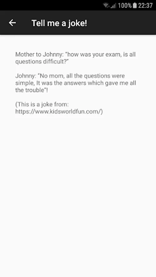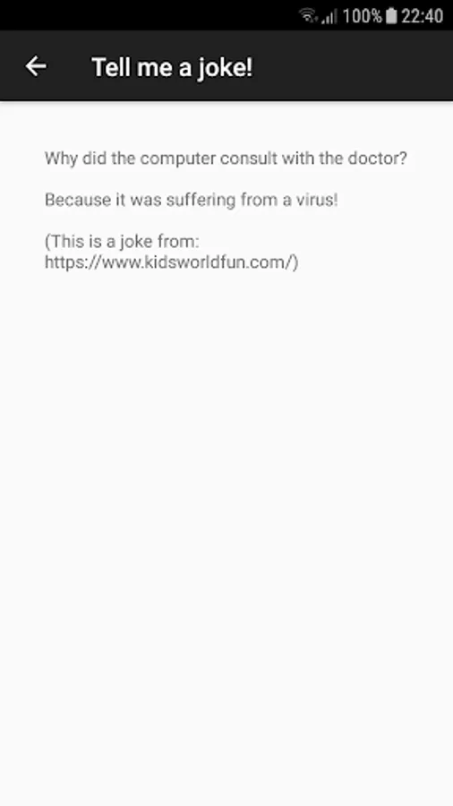 Com o Tell a Joke* você vê uma piada ao clicar no botão que se encontra na primeira tela. Para ver uma nova piada, retorne à tela inicial e clique no botão novamente.