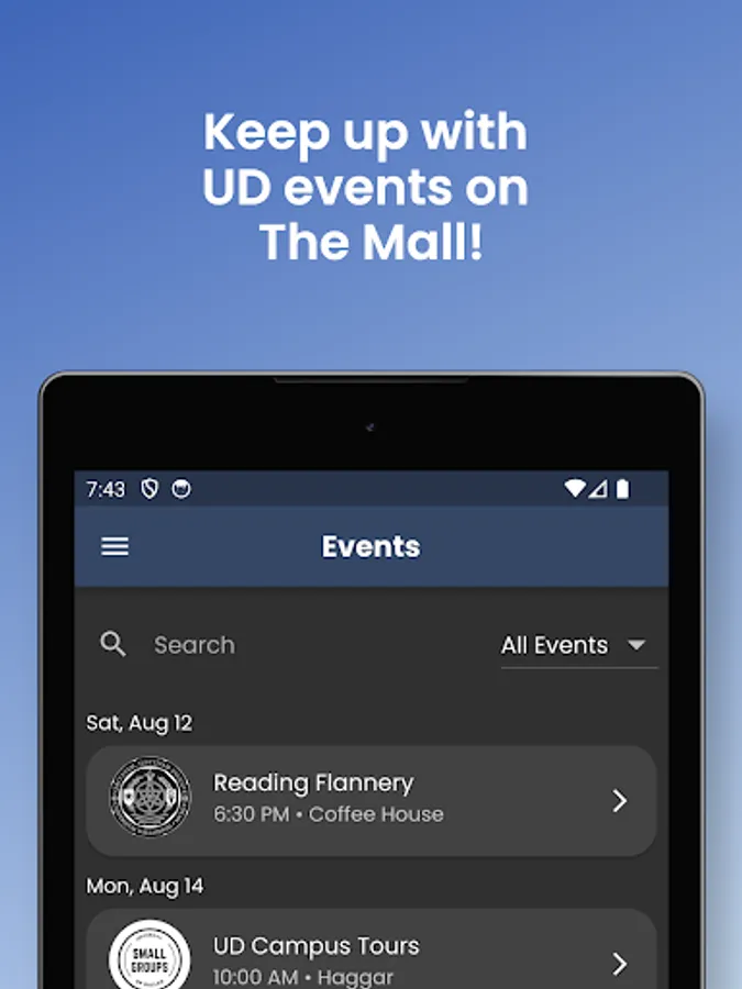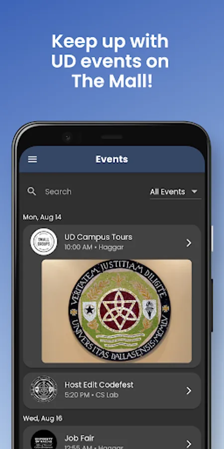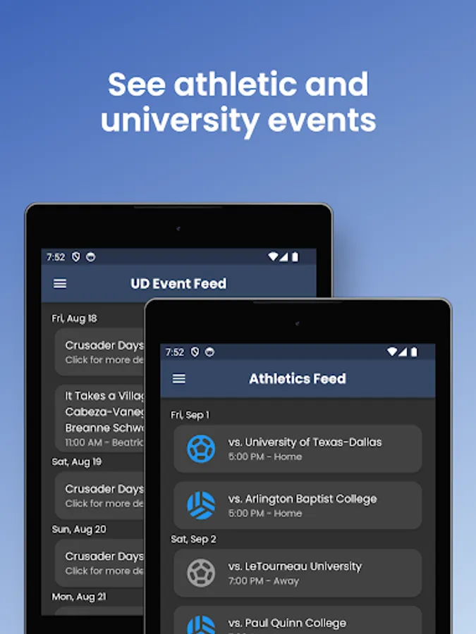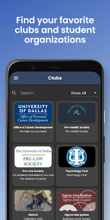 Clubs, departments, and other entities at UD will use this app to keep the community updated and informed about events at the University of Dallas. Clubs may create Polls, and students can subscribe for notifications regarding topics of interest.