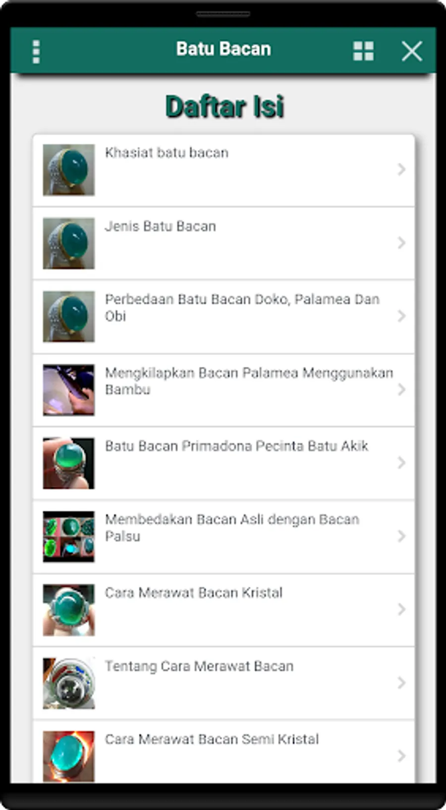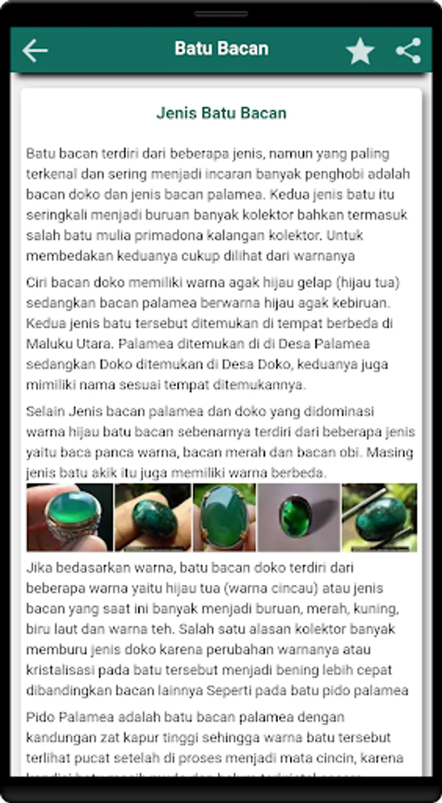 Stone Bacan application is an application guide containing information about gemstone kumplulan / agate especially Bacan taken from several sources that there are virtual world.