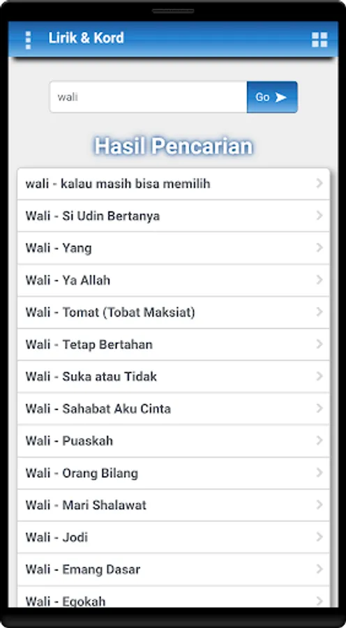 This application has more than 1500 key data such as the guitar or guitar chords, and lyrics from the singer famous singers such as Iwan Fals Indonesia, Slank, Noah, mayor, Afgan, god, etc., can all be accessed offline. Indonesian music lovers can search for song lyrics and chord simply by entering the title of the song or the singer name you want in the search.