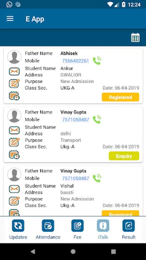 Teachers can mark student attendance through the app. Parent will get instance notification.