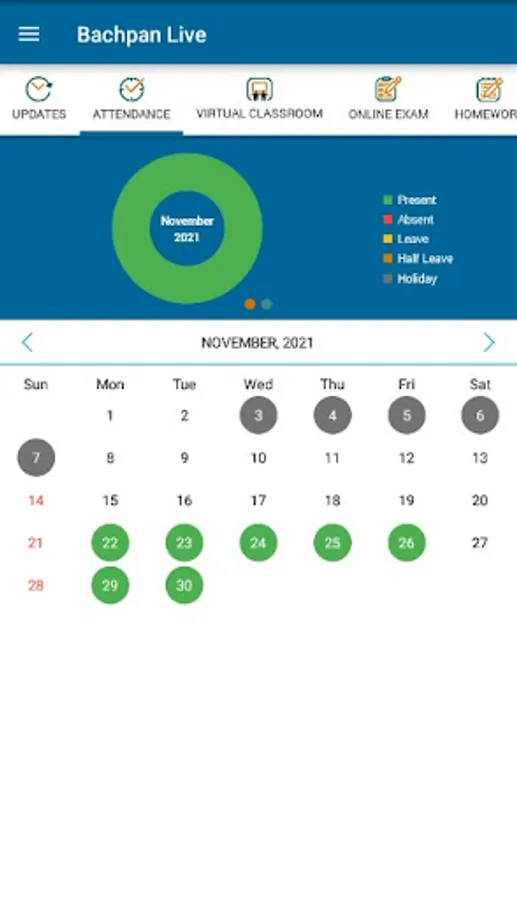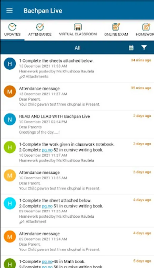 The “Attentive Attendance” feature allows parents to track the school attendance of the students.