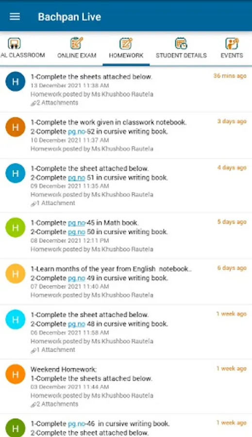 The teachers can have a record of the homework given and can take attendance through the application as well. They can update the exam marks on the app too.