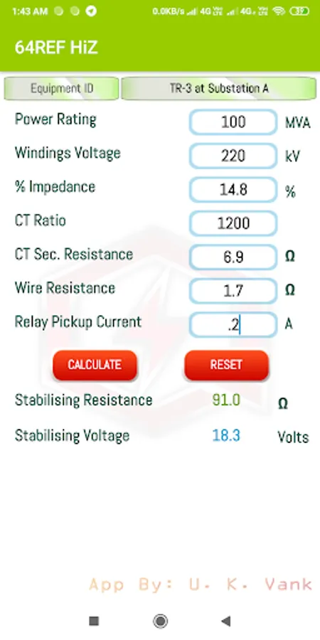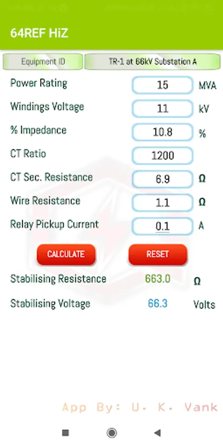 This application will be helpful to protection engineers for Restricted Earth Fault Protection setting calculation of High Impedance Method. This application is built with great care but user is recommended to cross check data before any implementation.