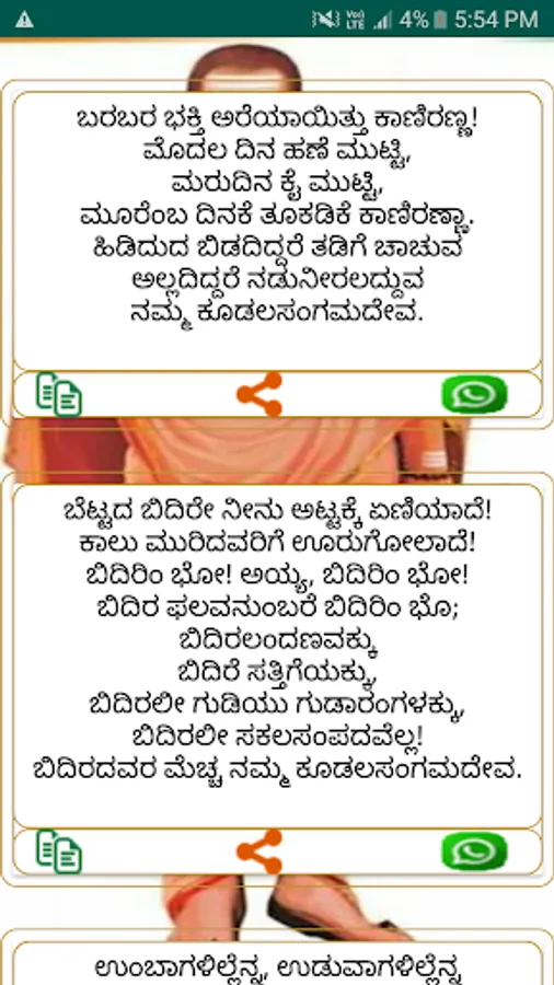 Basavanna was an Indian philosopher, poet, Lingayat saint in the Shiva-focussed Bhakti movement, and Social reformer . Basavanna spread social awareness through his poetry, popularly known as Vachanaas.