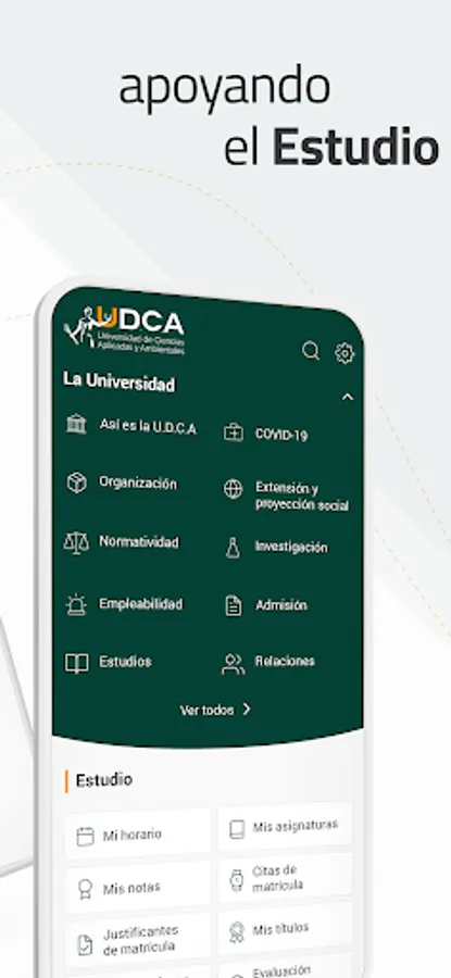 This is the official App of the University of Applied and Environmental Sciences (U.D.C.A): accessible, free of advertising and with functionalities for everyone: students; teachers; researchers; officials; graduates; graduates; applicants and families and guests. Everyone will find what they are looking for on their profile: