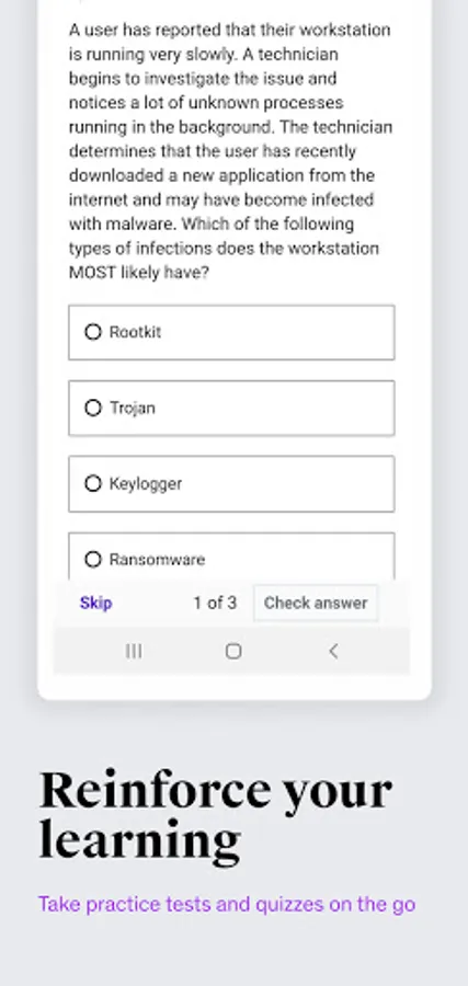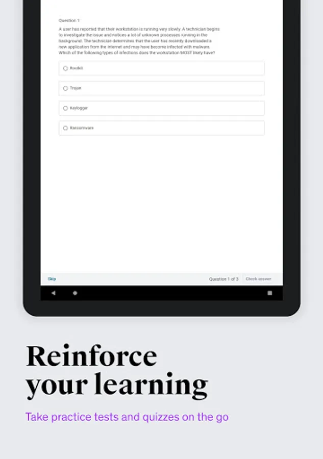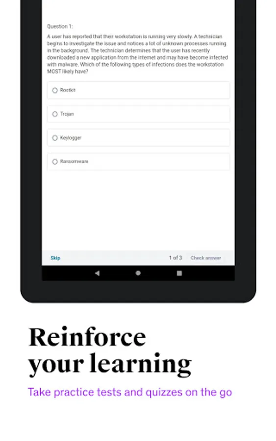 Optimal learning with the ability to take quizzes or practice exams on your phone