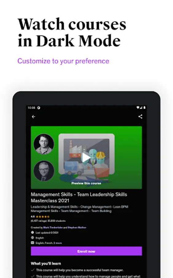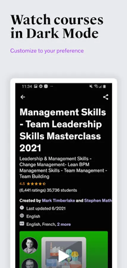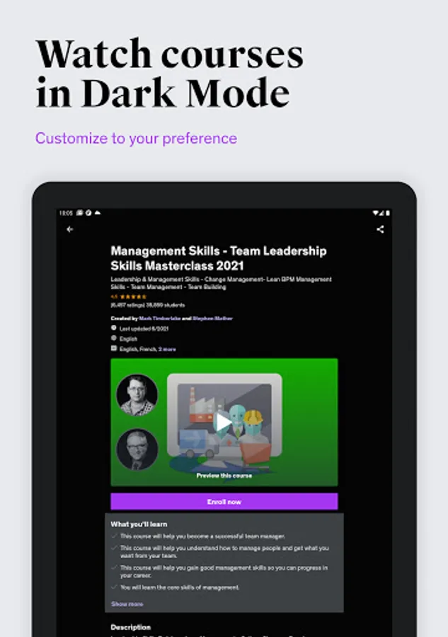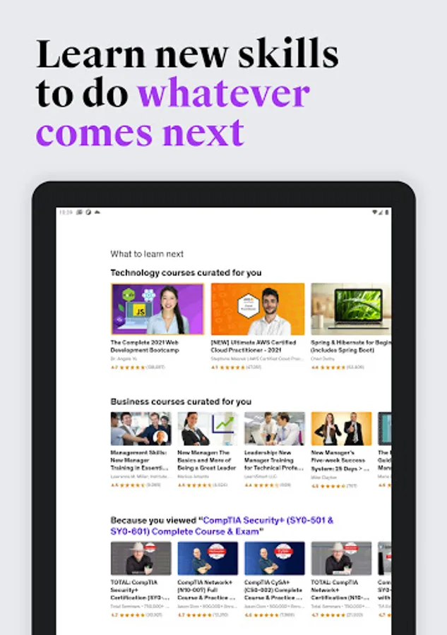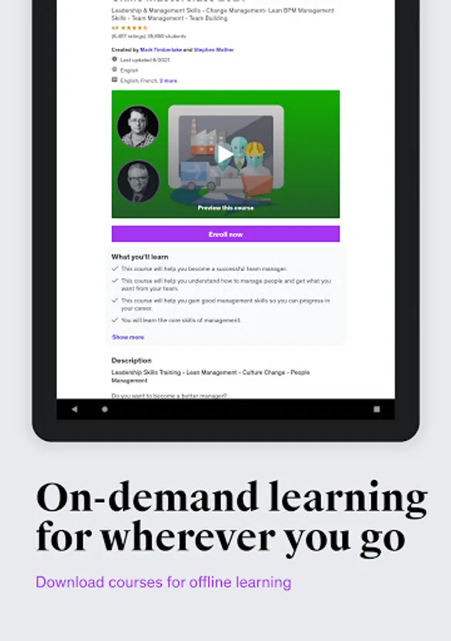 Udemy Business features 17,000+ top-rated and most relevant courses for you to learn new skills anytime, anywhere. From software development, IT, design, leadership to communication skills, the Udemy Business mobile app puts the freshest, most in-demand content in your hands. Upskill your talents and learn from highly respected real-world practitioners, thought leaders, and experts from around the world.