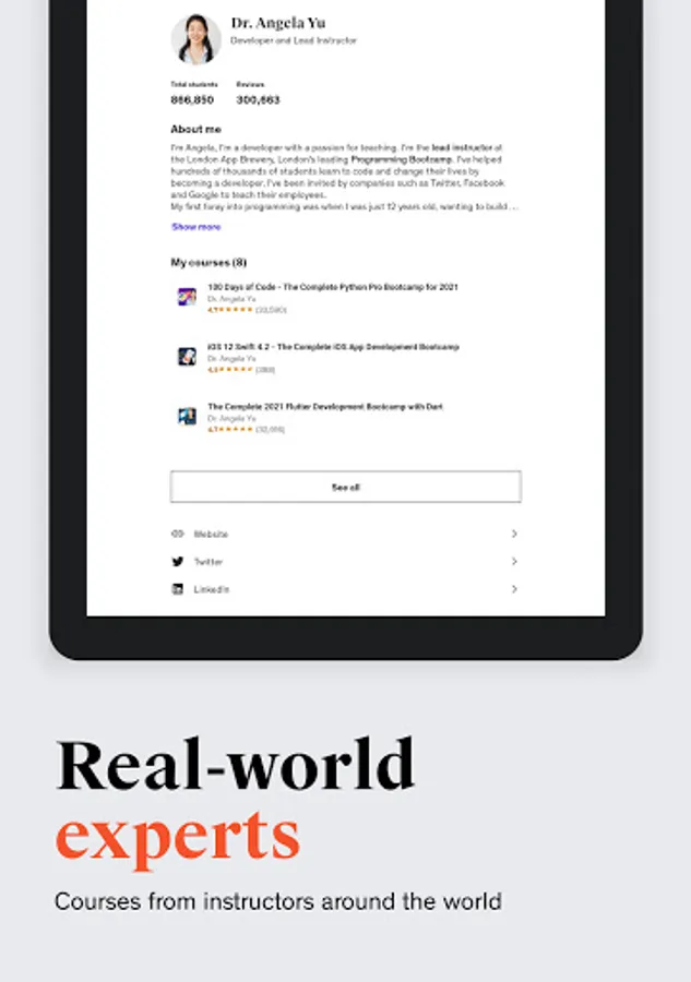Skill up to success. Udemy is a leading destination for online courses that empowers you to grow professionally and personally. Get the app to explore our expansive library of thousands of topics with cutting-edge online video courses in Coding, Development, Python, Java, Business, Marketing, SEO, SEM, Drawing, Photography, and much more.
