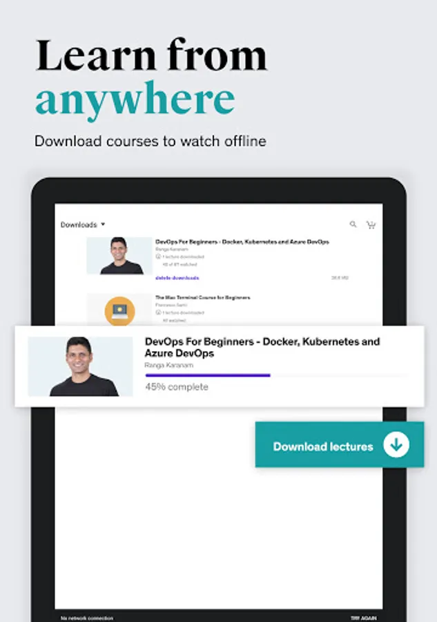 LEARN OFFLINE: Download courses and learn even when your internet connection is unreliable