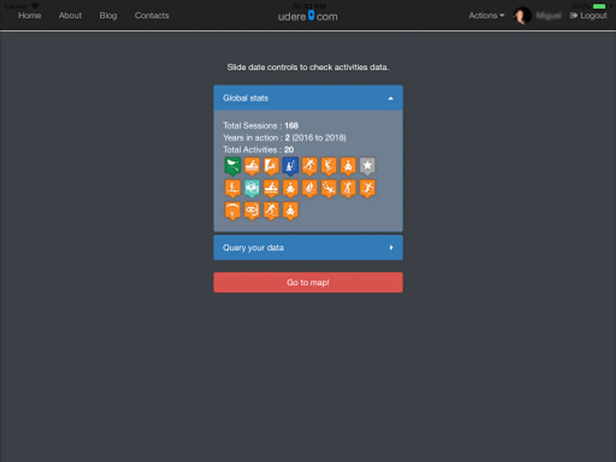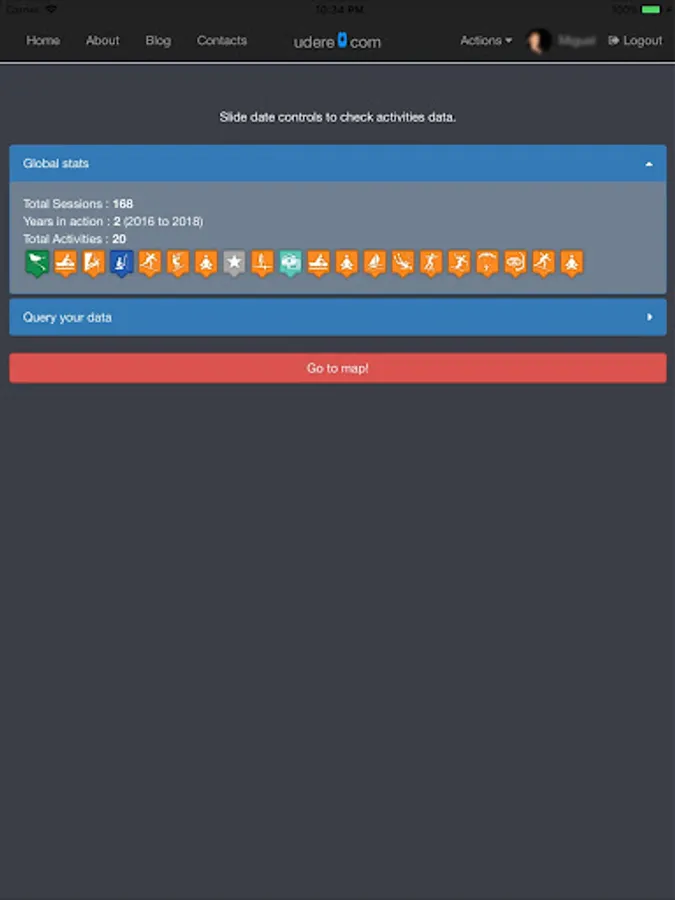 Basically, after logging in, the user marks checkin at the spot where he is. It may also set conditions about the weather, sea, river, street, etc., depending where he is and what is going to do. It may also set when is gonna do the checkout. These simple tasks will allow others to check where, when and how the outdoor activity scenario is.