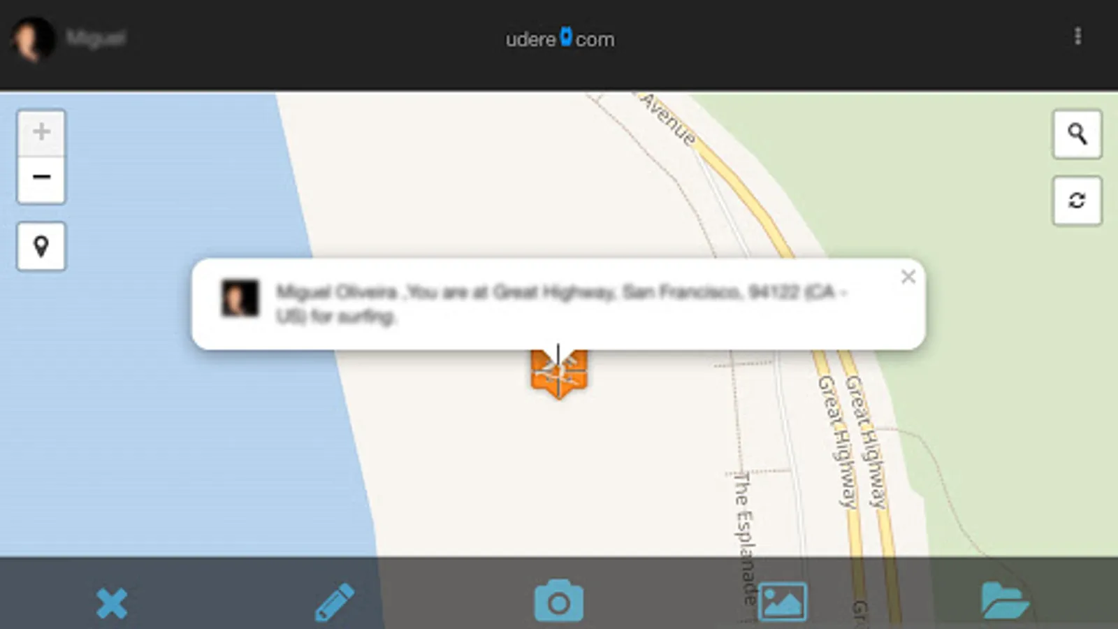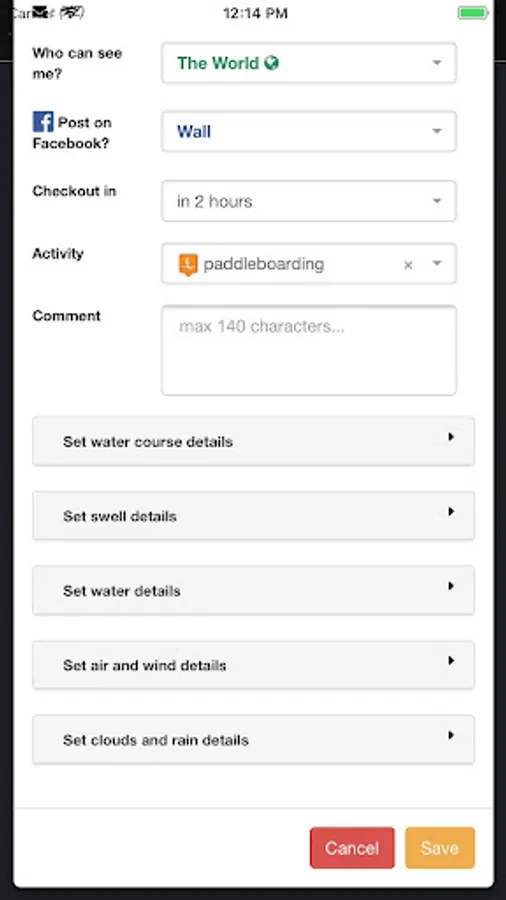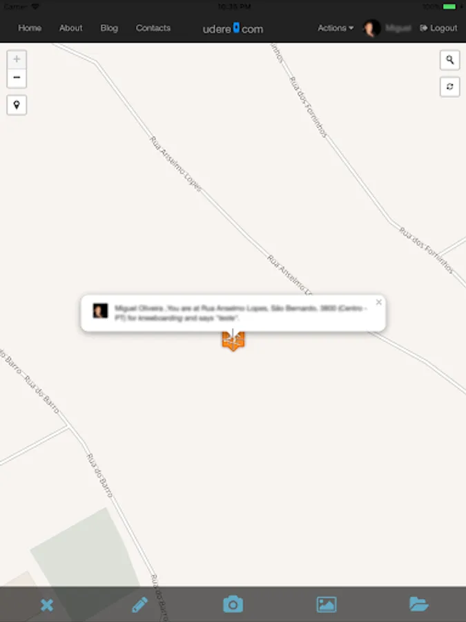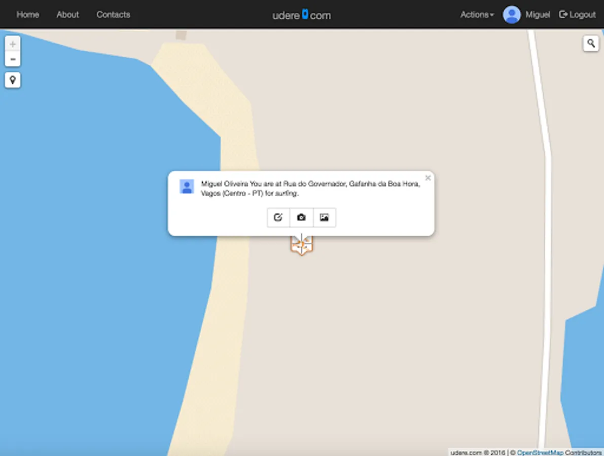 Features available are: Share your location on map; Set the activity you are about to do; Define the conditions regarding your opinion; Upload photos; Check the weather forecast on map.