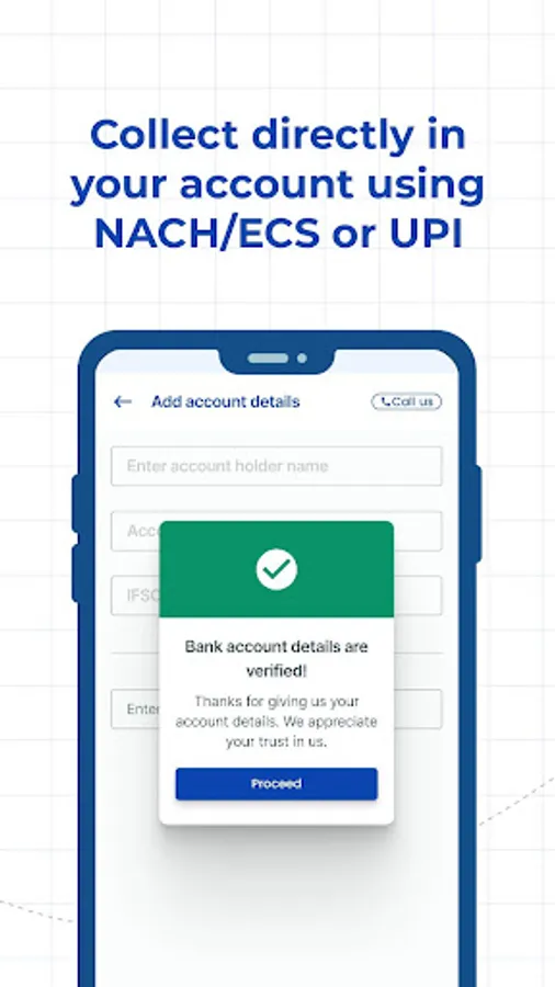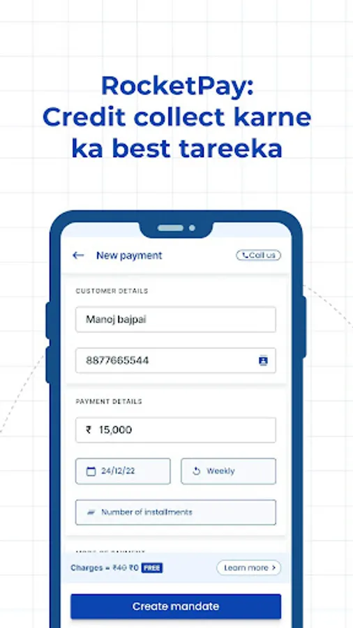 Credit dene k time RocketPay app se sirf 30 seconds k andar aap eNACH ya fir UPI mandates set karen apne customers par. Fir due date par aapka paisa customers k bank account se auto-debit ho jayega aapke bank account me.