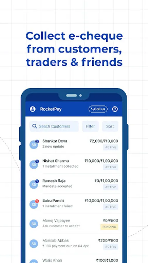 RocketPay app se aap apne customers ko diya hua credit automatically collect kar sakte hain, directly customers ke Bank account se apne Bank account me without any follow-ups or reminders.