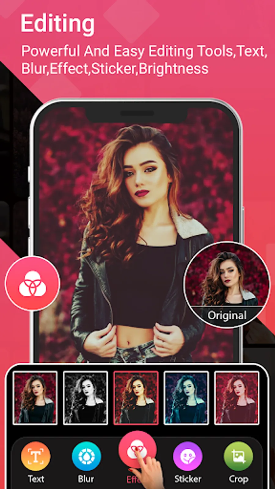 # Photo editor with coming editing tools like crop, draw, blur, sticker, text, and apply photos from gallery