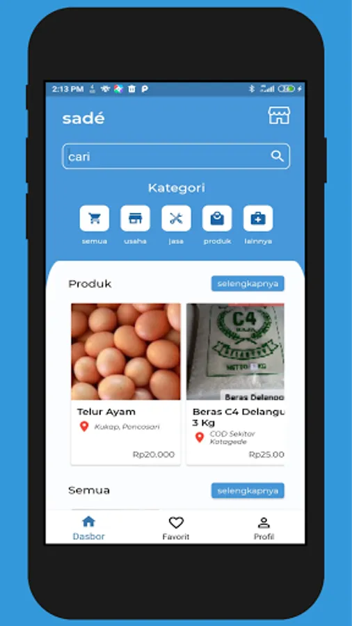 The Sade application provides features for those of you who want to find, offer products, goods or services easily and of course for free. If you find something that matches you can look at the description and contact the contact listed. Make a deal as you like without any boundaries.