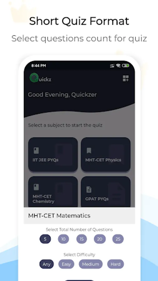 Introducing Quickz - A short quiz format platform for different competitive exams. Take quizzes for 5, 10, 15 Questions according to your available time and quickly go through variety of questions patterns for exams.