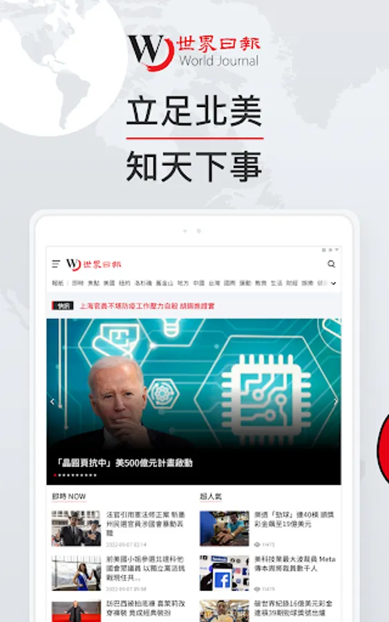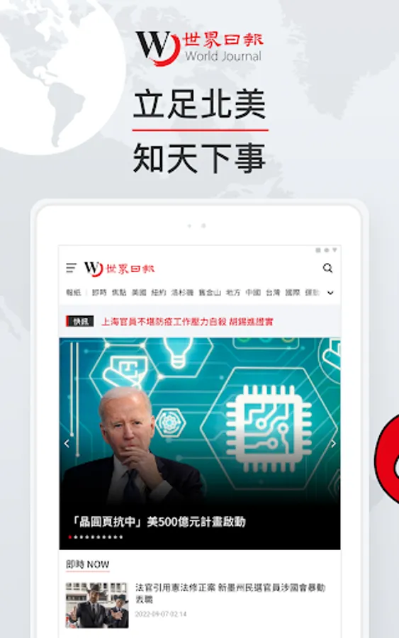 Swipe and get news quickly. World Journal’s application delivers the latest articles for chinese readers around the world. The application includes breaking news, developing story, politics, international, business, finance, stocks, sports, technology, entertainment, and more. This free app lets you read the latest updates wherever you are.