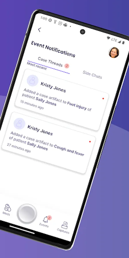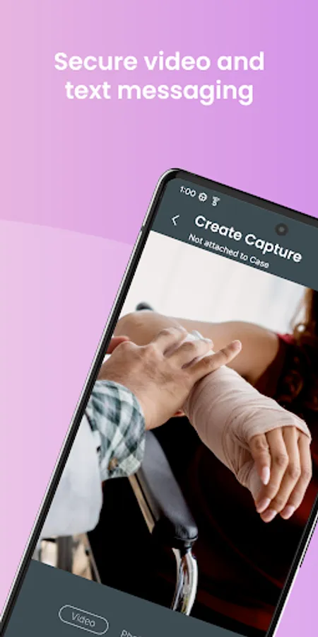 • Securely exchange videos, photos, texts, and documents at your convenience