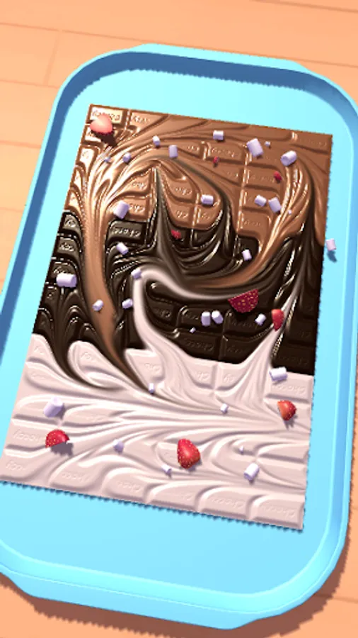 70° degrees Celsius (160°F) for 3-4 minutes. The chocolate is soft and ready to be molded. Smear the chocolate around and mix the dark, milk, and white chocolate to make a personalized, perfect chocolate bar!