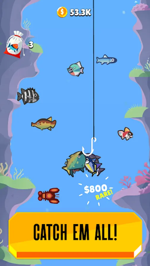 Drop your line, explore the ocean depths, and reel in an abundance of fish on your ascent. Upgrade to capture a greater variety of fish, plunge into deeper waters! Discover and collect all fish species in this effortlessly engaging and captivating game!