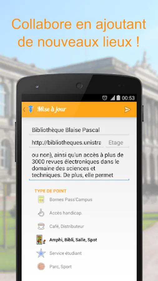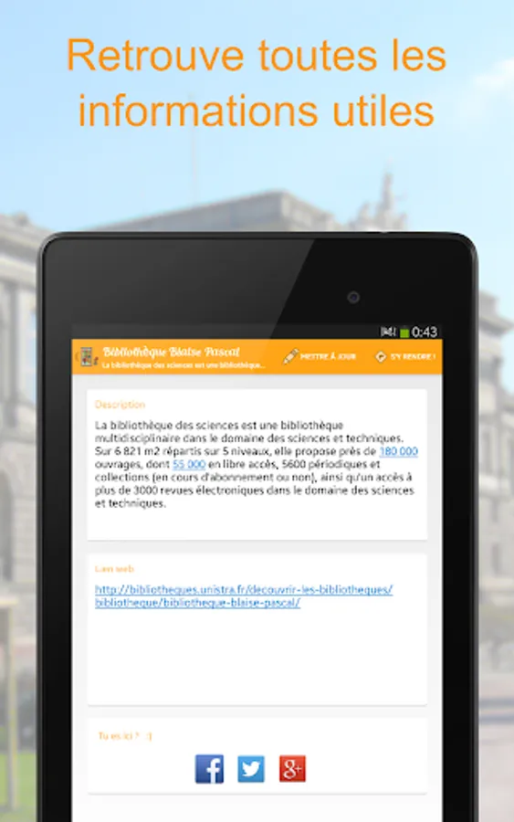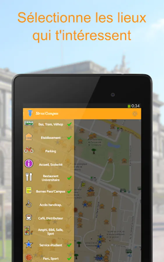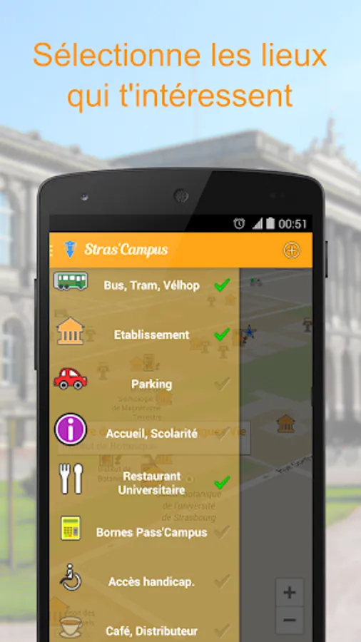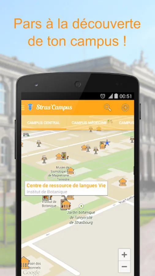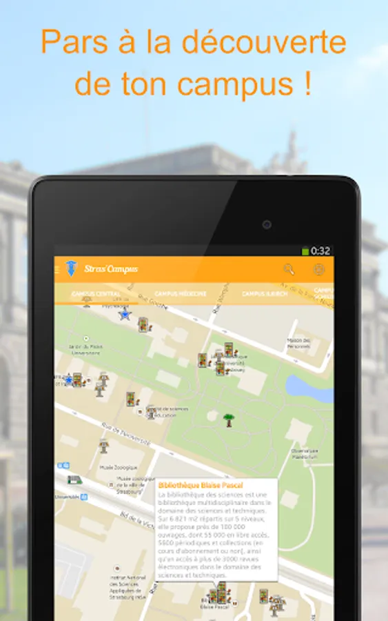 Stras'Campus allows you to easily find sites, services and attractions on the campus of the University of Strasbourg!